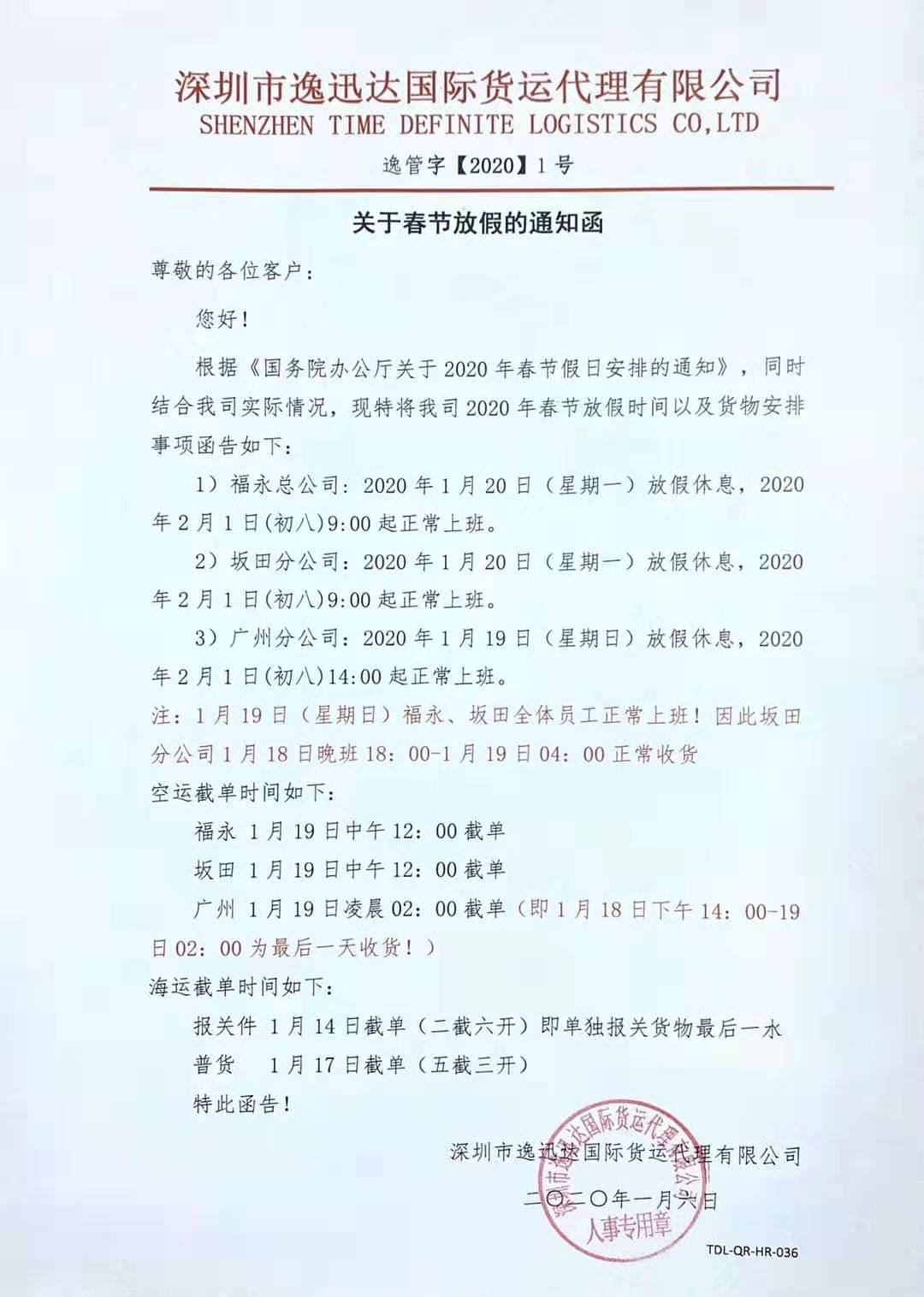 2020春節(jié)放假通知